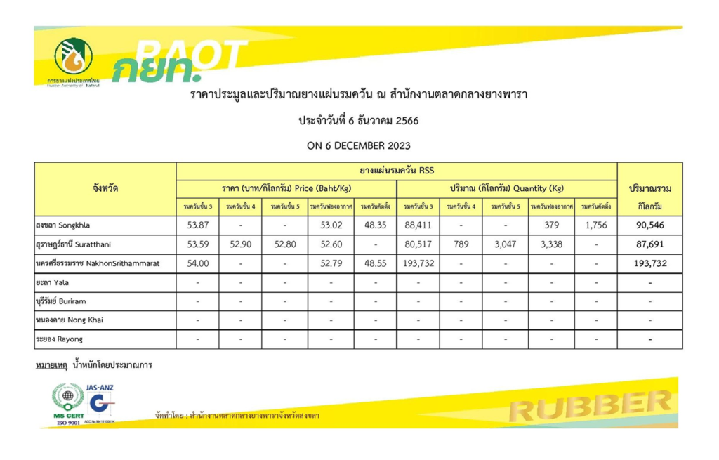 ราคายางประจำวัน