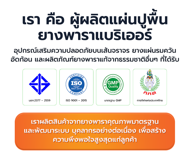 เรา คือ ผู้ผลิตแผ่นปูพื้นยางพาราธรรมชาติ แบริเออร์ได้รับ มอก. รายแรกในประเทศ