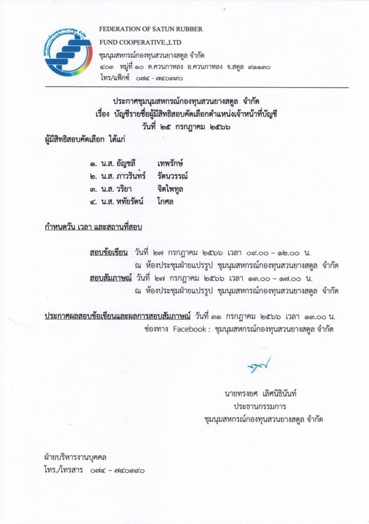 ประชาสัมพันธ์ ขอแจ้งรายชื่อผู้มีสิทธิสอบคัดเลือกตำแหน่งเจ้าหน้าที่บัญชี ขอแจ้งรายชื่อผู้มีสิทธิสอบคัดเลือกตำแหน่งเจ้าหน้าที่บัญชี